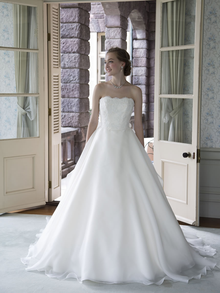 柔らかいシルクサテンオーガンジをドレス全体に使った、優しく可愛らしいドレスです。