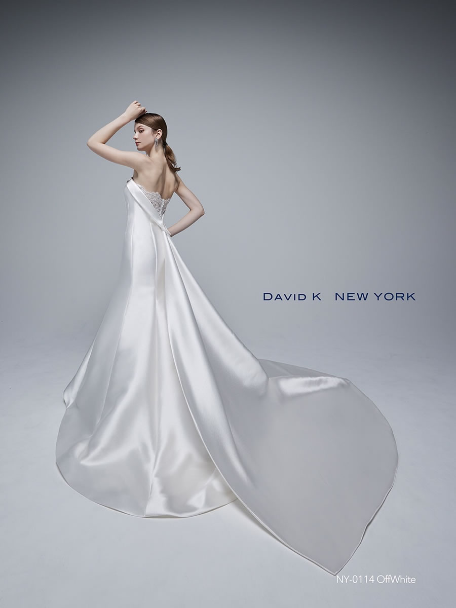 ポイントになっている背中のシースルーレースとバックスタイルのロングトレーンで重厚感のある一着です。